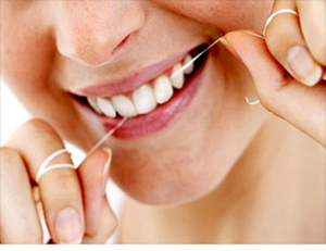 - Spaces in between should be cleaned using floss or interdental brush .